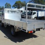 Note: Plus on road costs. Ready to go! Hard to find Fuso Canter Crew cab. Fitted with a Transalloy tray that is 3450mm long x 1850mm wide and includes a removeable rear ladder rack. Drop sides. This is the Facelift model Canter with LED Headlights and new Larger multimedia screen that includes Apple Carplay and Android Auto. Call the new Fuso sales team to arrange an inspection.