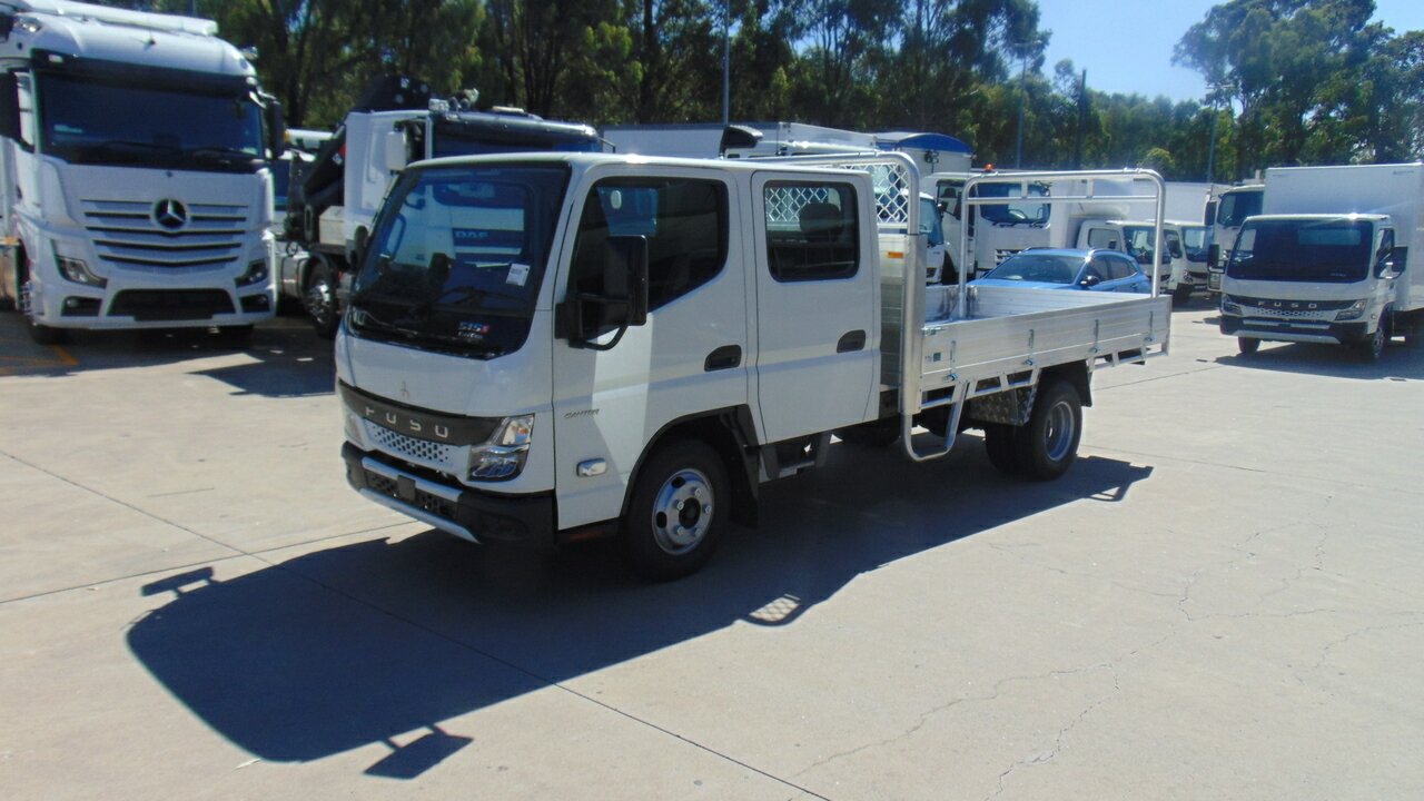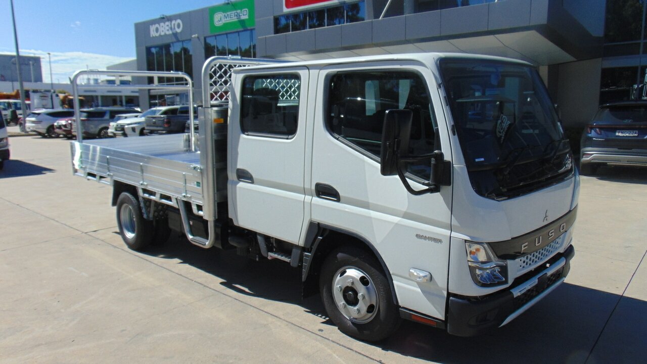 Note: Plus on road costs. Ready to go! Hard to find Fuso Canter Crew cab. Fitted with a Transalloy tray that is 3450mm long x 1850mm wide and includes a removeable rear ladder rack. Drop sides. This is the Facelift model Canter with LED Headlights and new Larger multimedia screen that includes Apple Carplay and Android Auto. Call the new Fuso sales team to arrange an inspection.