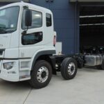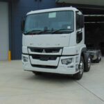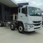 NOTE: Plus on road costs. 2023 Fuso Shogun 400hp 8×4 cab chassis. 12 speed AMT, Full suite of safety features. Auto lights and wipers, 6720mm wheelbase, NOTE: This chassis is not fitted with an LSD. Call the Fuso sales team to organise a quote for you