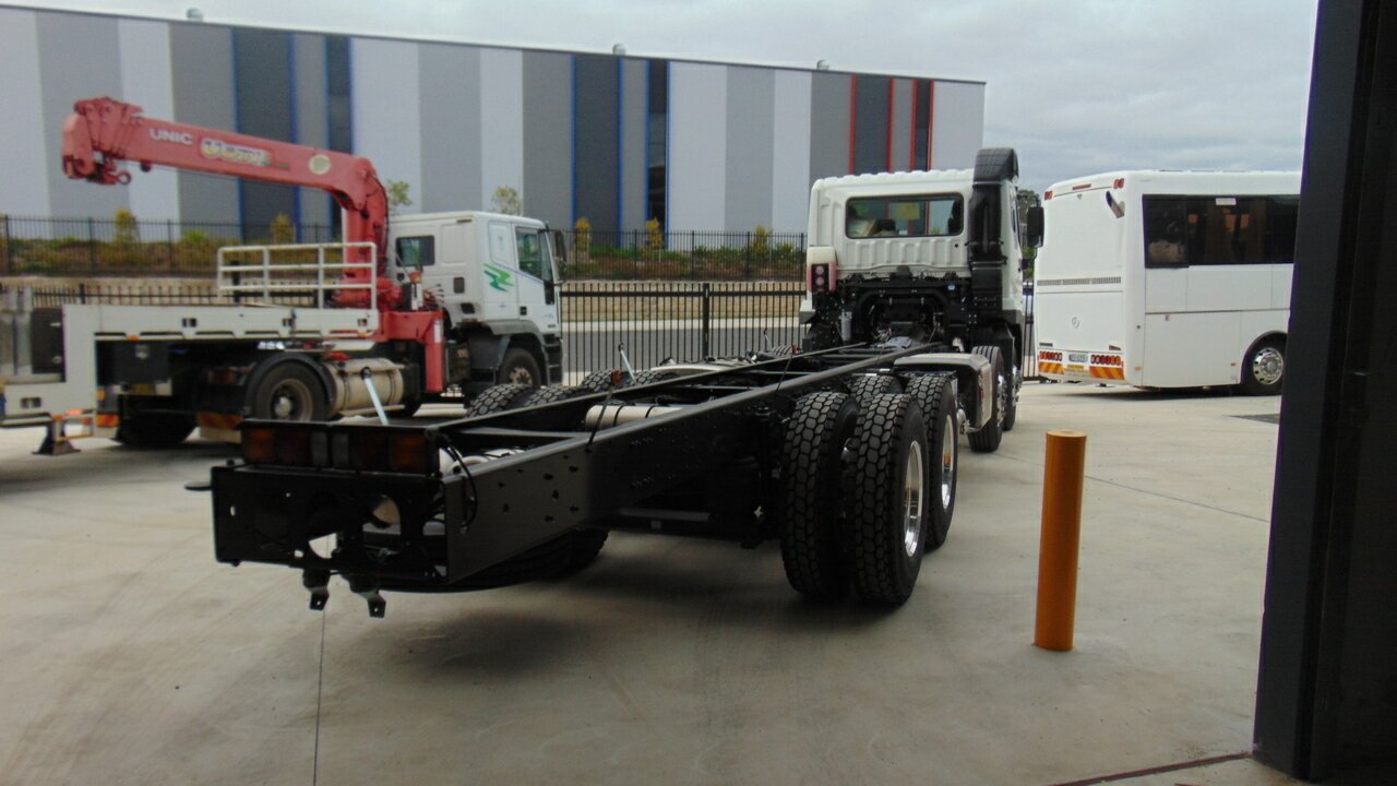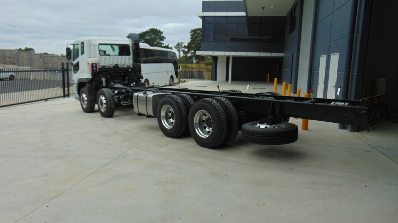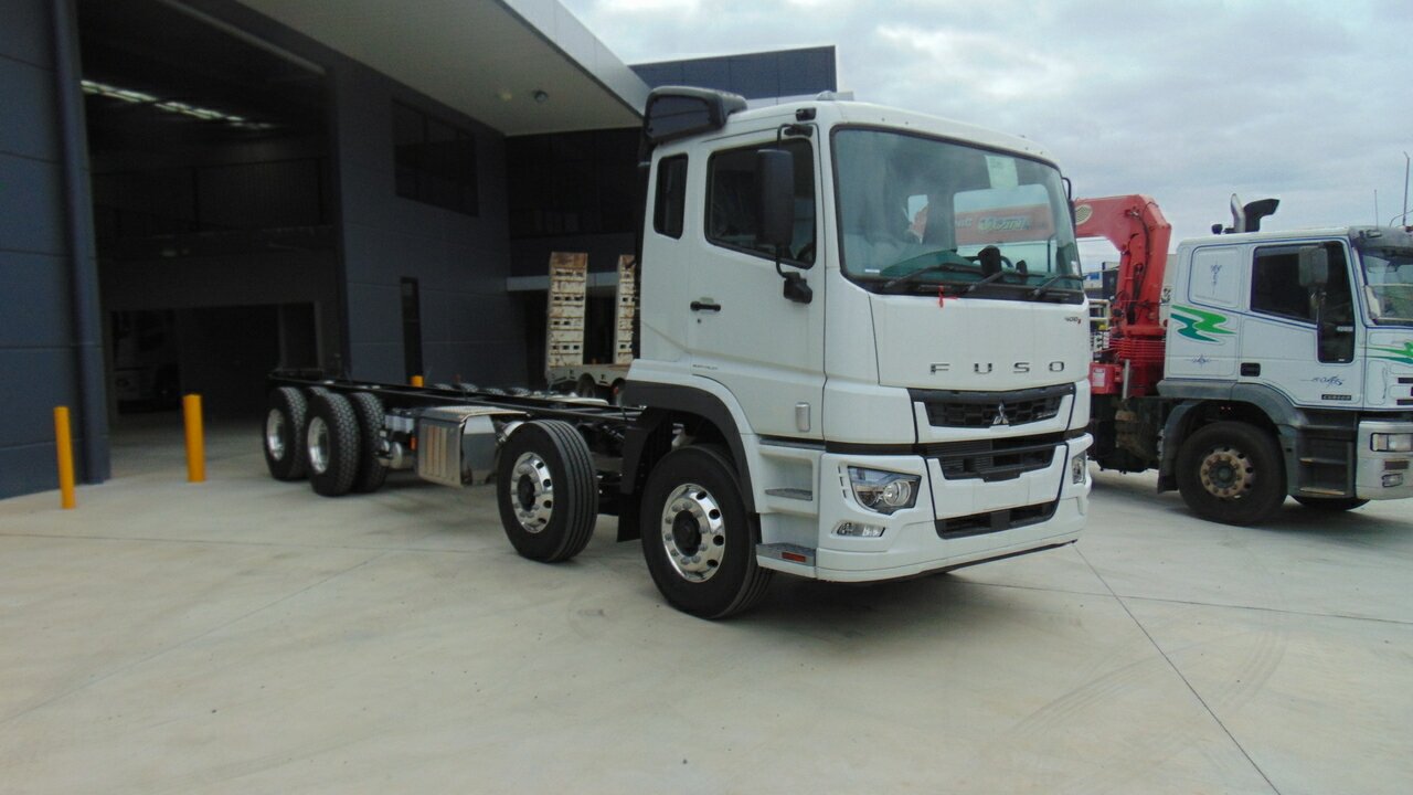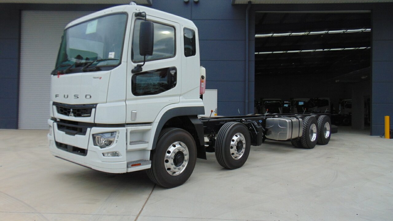 NOTE: Plus on road costs. 2023 Fuso Shogun 400hp 8×4 cab chassis. 12 speed AMT, Full suite of safety features. Auto lights and wipers, 6720mm wheelbase, NOTE: This chassis is not fitted with an LSD. Call the Fuso sales team to organise a quote for you