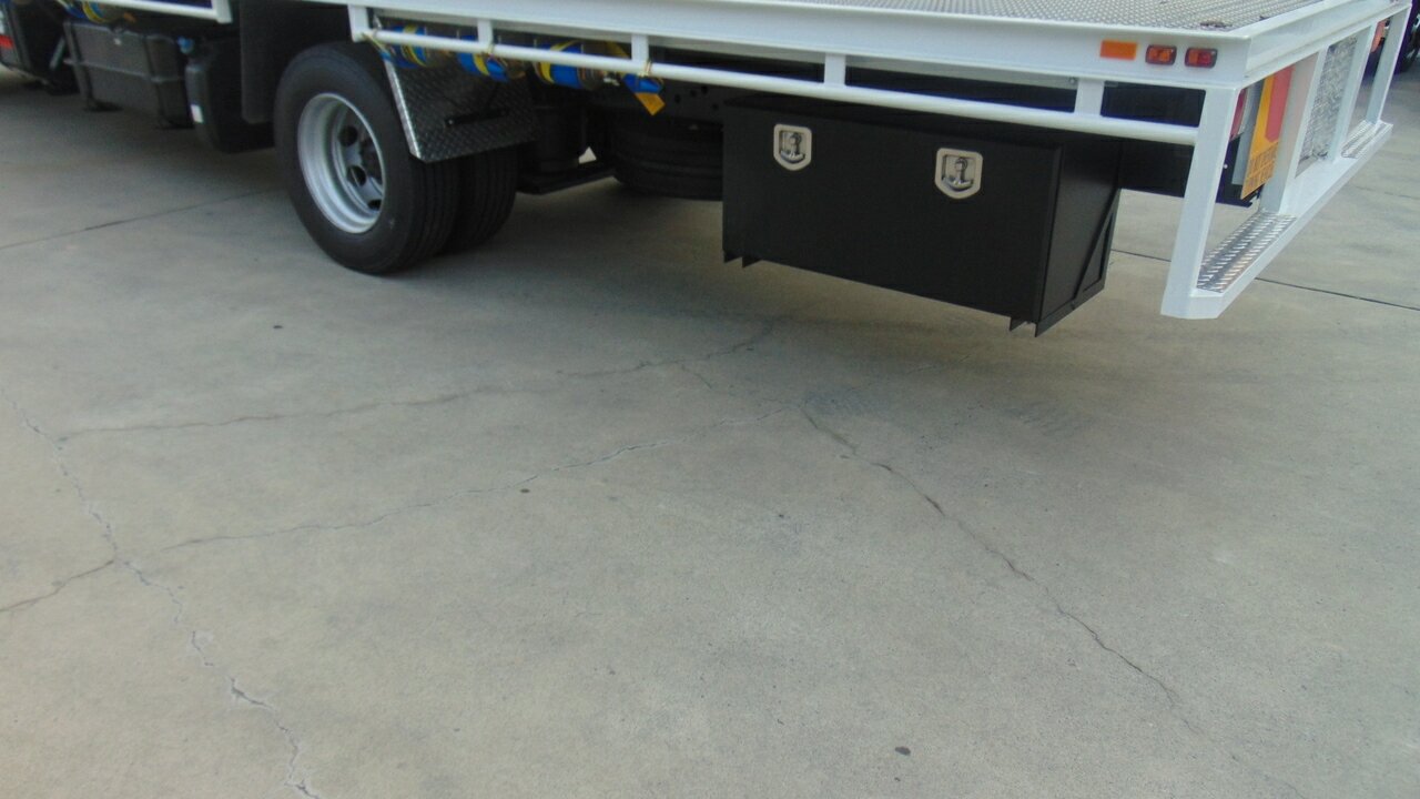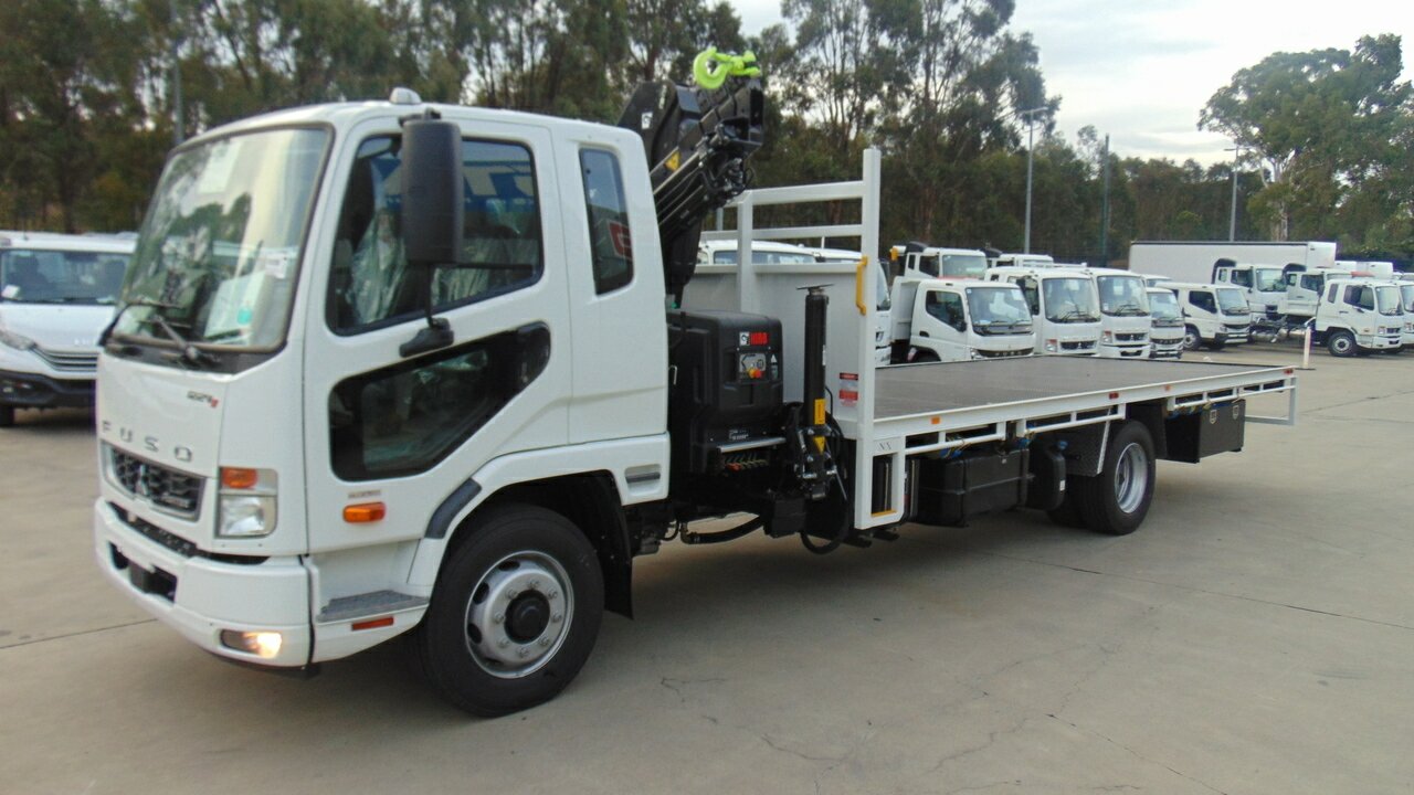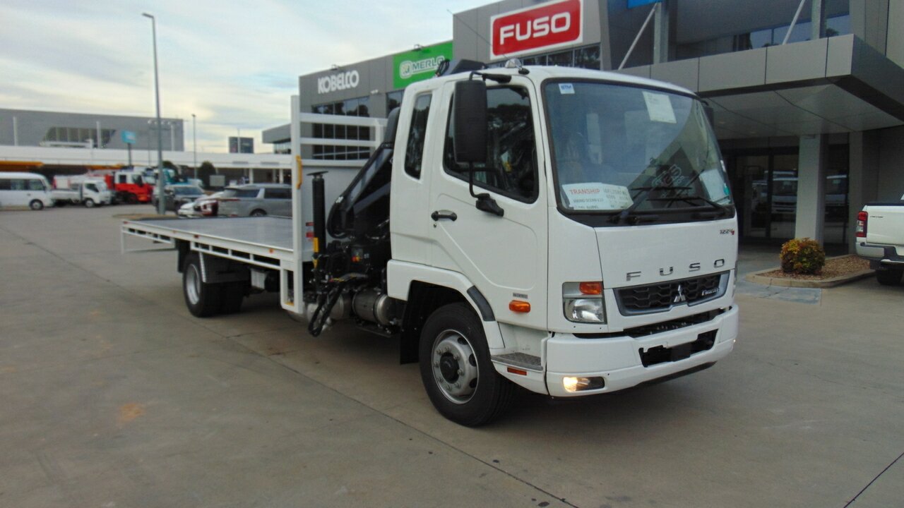 NOTE: Plus on road costs. Brand new Fuso Fighter 1224 Auto model with a front mounted Hiab X-Hi Duo 078B2 crane with hand controls. The tray length is 6,450mm , it has a 1200 mm toolbox and winches on track. Call the new Fuso sales team to arrange an inspection. Crane warranty is 2 years on Hydraulics, Electrics and Electronics and 5 years on the crane structure.